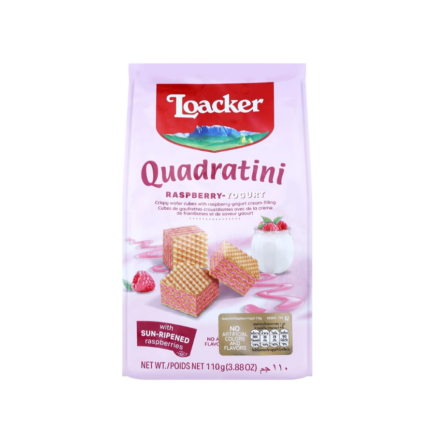 Loacker Quadratini Raspberry Yoghurt Wafer 110g.