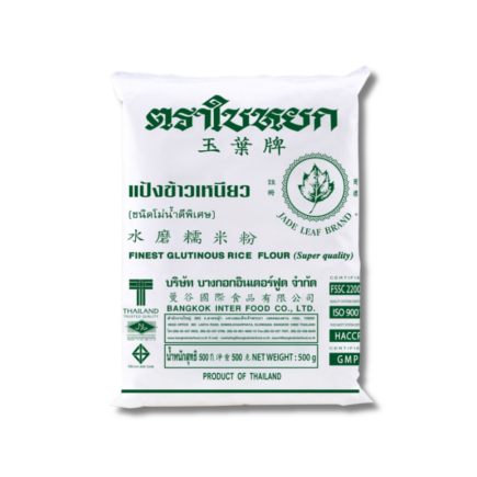 แป้งข้าวเหนียว ชนิดโม่น้ำดีพิเศษ ตราใบหยก 500 กรัม