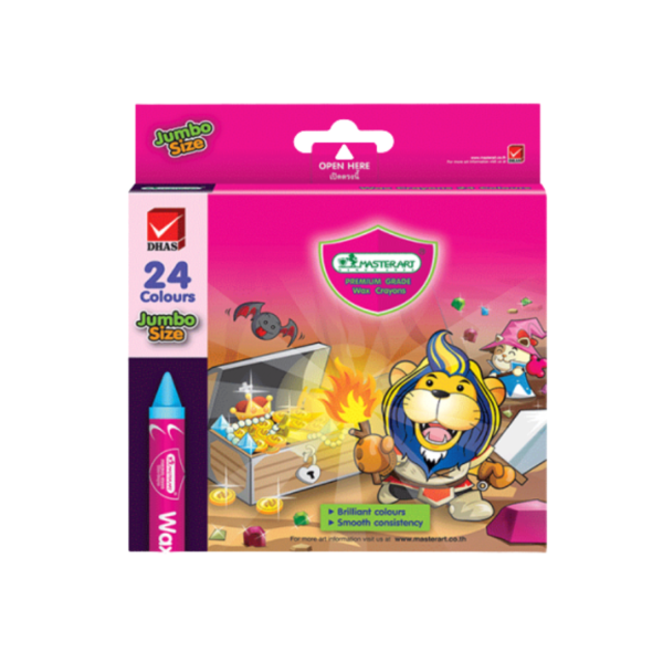 สีเทียนจัมโบ้ และซุปเปอร์จัมโบ้ มาสเตอร์อาร์ต 24 สี ออกแบบให้มีขนาดแท่งใหญ่พิเศษ มีความแข็งแรง ทนแรงกด แรงจับได้ดี เหมาะสำหรับเด็กๆ ที่เพิ่งเริ่มฝึกหยิบจับ และขีดเขียน อีกทั้งเนื้อสียังมีความสด เข้ม และติดทนไม่ซีดจางเมื่อระบาย สร้างสรรค์จินตนาการไปกับการวาดรูประบายสีได้อย่างไม่มีขีดจำกัด และมีความปลอดภัยผ่านมาตรฐาน มอก. 1149 – 2548